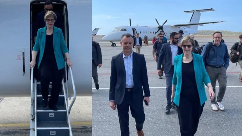 Upon her arrival in Caracas, Laura Dogu confirmed her presence via the official ‘X’ account of the US Embassy in Venezuela. She wrote that she and her team were ready to begin work. Photos of her disembarking from the plane at Maiquetía International Airport were also shared with the message.