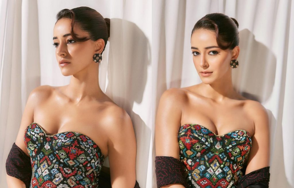 For the red carpet event, Ananya wore a striking Bandhani saree from Abu Jani Sandeep Khosla. She paired it with a colorful Patola corset blouse that added a bold, modern twist to her traditional look. The blend of timeless elegance with contemporary style made her look even more captivating. While the saree itself was a beauty, it was the corset blouse that truly stole the spotlight, drawing all the attention with its intricate beadwork and structure.
