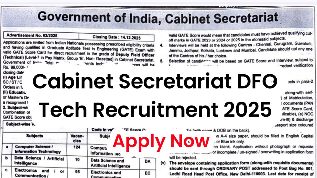 | Cabinet Secretariat DFO Tech Bharti 2025 Online Form End | 14 December 2025 |