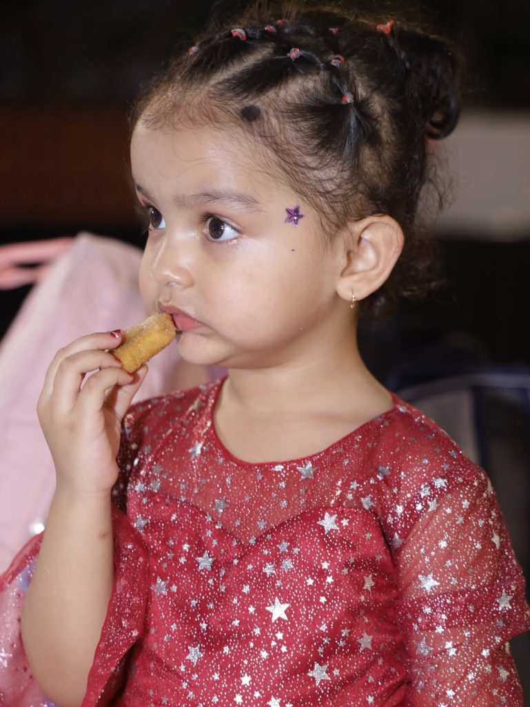 At the party, Debina and Gurmeet cut the cake with their two daughters—Lianna and Divisha Chaudhary. Together, they sang “Happy Birthday Divisha” and shared the sweet moment with the media. The couple included not only their guests but also the media personnel in the celebration by feeding them cake.