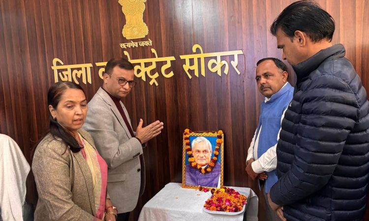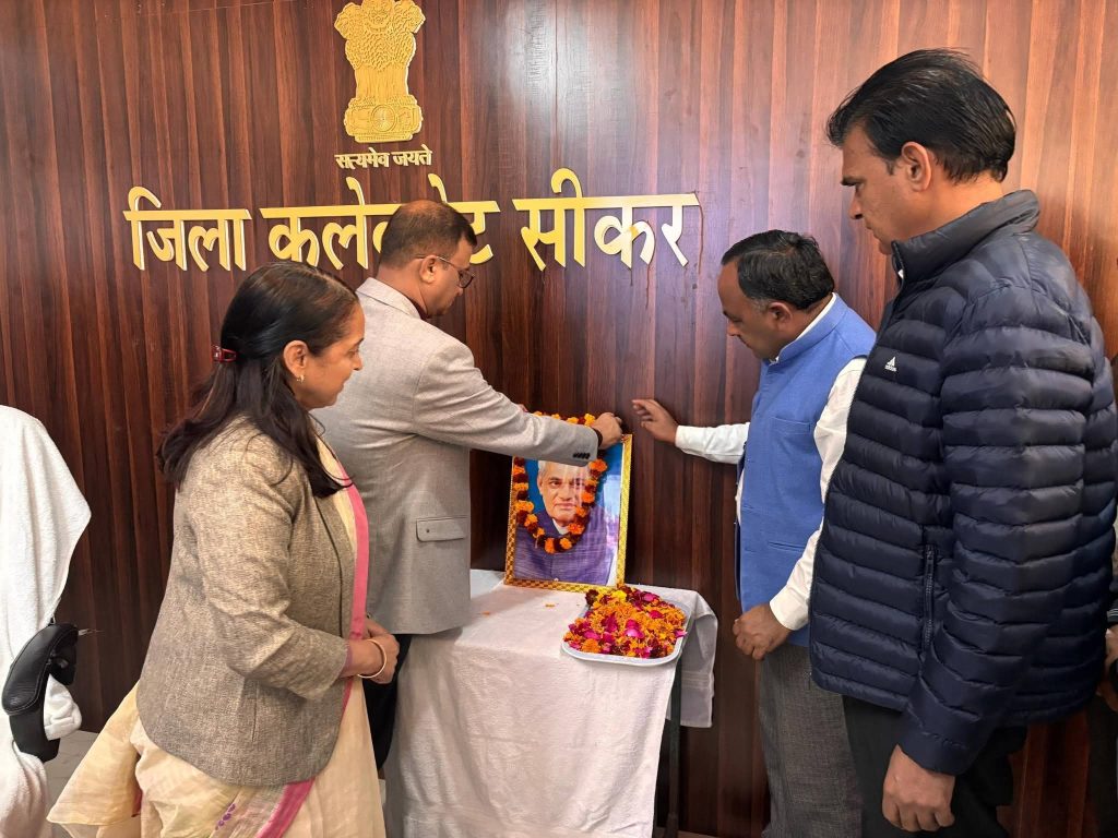 Sikar, Rajasthan – Good Governance Day was celebrated in the VC auditorium of the District Collectorate on Wednesday, marking the birth anniversary of former Prime Minister and Bharat Ratna late Atal Bihari Vajpayee. District Collector Mukul Sharma paid tribute to Vajpayee by garlanding his portrait.