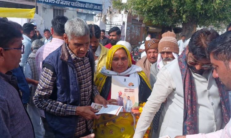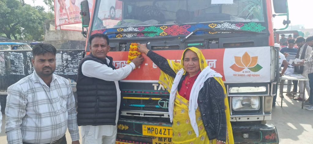 Bamanwas, Sawai Madhopur – On the completion of two years of the Bharatiya Janata Party under the leadership of the successful Chief Minister of Rajasthan, Bhajanlal Sharma, as part of the Seva Pakhwada across the state, the Good Governance Vikas Rath Yatra was welcomed at the Baunli Mandal of the Bamanwas Vidhansabha and the Good Governance Rath was flagged off by Panchayat Samiti head Krishna Poswal.