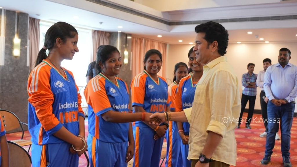 “Indian Women’s Blind Cricket Team Captain Deepika TC expressed her feelings after meeting Sachin, saying, “We have always played our game with passion and belief, but when we heard the inspiring words from Sachin Sir, our spirits were reinvigorated. This moment is an unforgettable experience in our lives.”