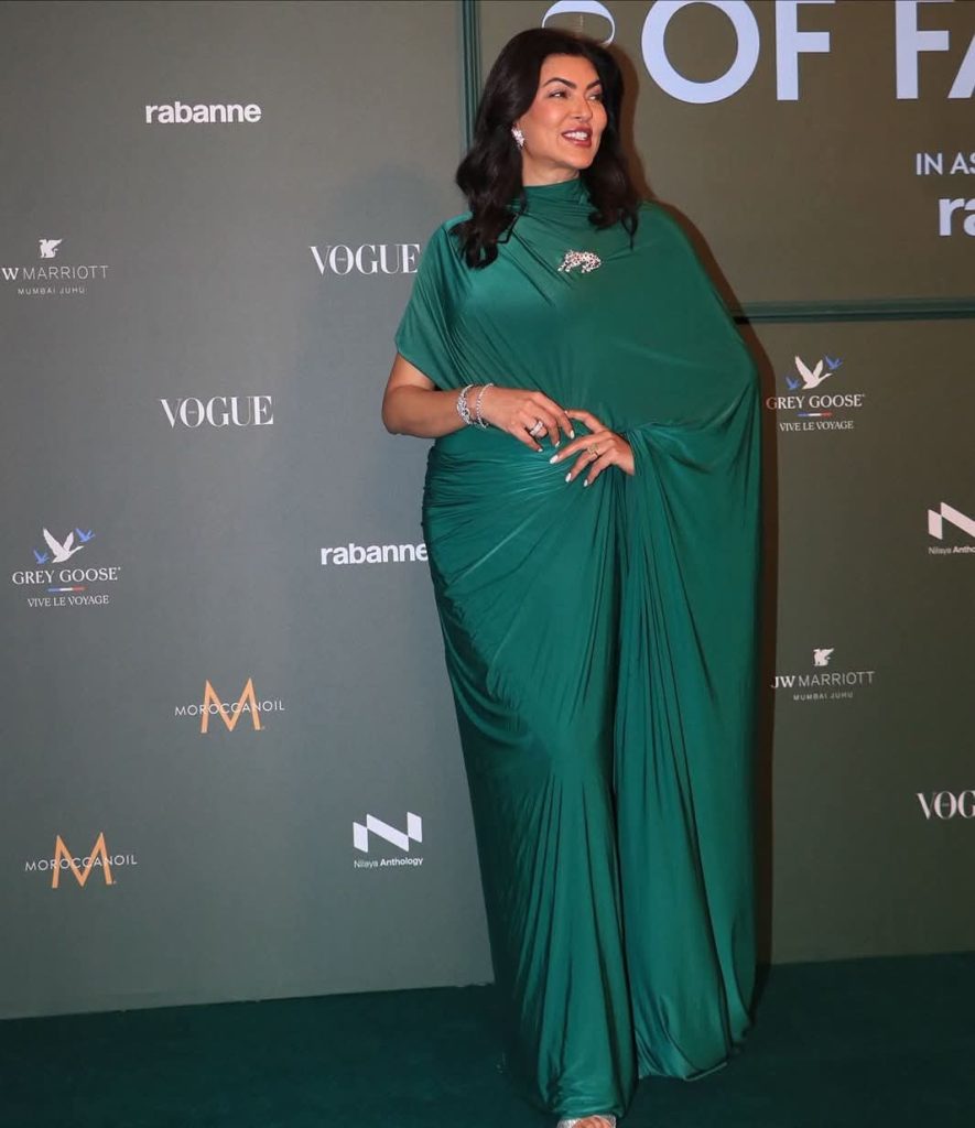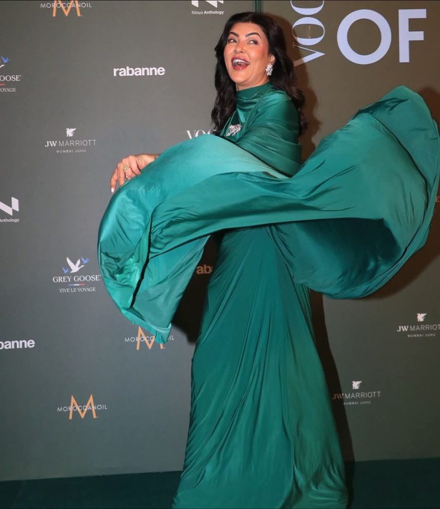 Popular Bollywood actress and Miss Universe Sushmita Sen has always been in the news for her looks and style statements. Recently, Sushmita was spotted arriving at the #VogueForcesOfFashion event wearing a green gown. Her look went viral on social media, but this time, something special was noticed: some signs of aging have begun to appear on her skin.