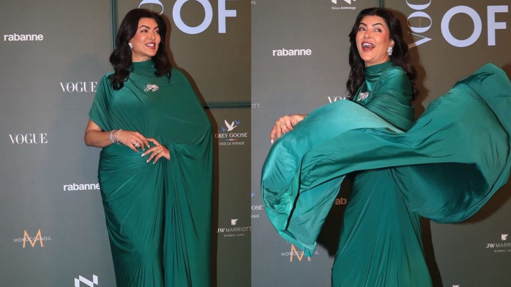 Popular Bollywood actress and Miss Universe Sushmita Sen has always been in the news for her looks and style statements. Recently, Sushmita was spotted arriving at the #VogueForcesOfFashion event wearing a green gown. Her look went viral on social media, but this time, something special was noticed: some signs of aging have begun to appear on her skin.