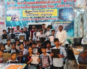 Free educational materials were distributed today to students of classes 9 to 12 at PM Shri Swatantrata Senani Chiranjilal Sharma Government Senior Secondary School, Karauli.