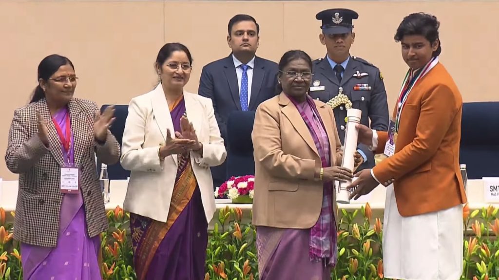 National Child Award, – Vaibhav Suryavanshi, a 14-year-old cricketer from Bihar, has been awarded the Prime Minister’s National Child Award. President Draupadi Murmu presented Suryavanshi with the award. Following the ceremony, Vaibhav also met Prime Minister Narendra Modi, who praised him. The award is given to children between the ages of five and 18, making it the highest civilian honor for children in this age group.