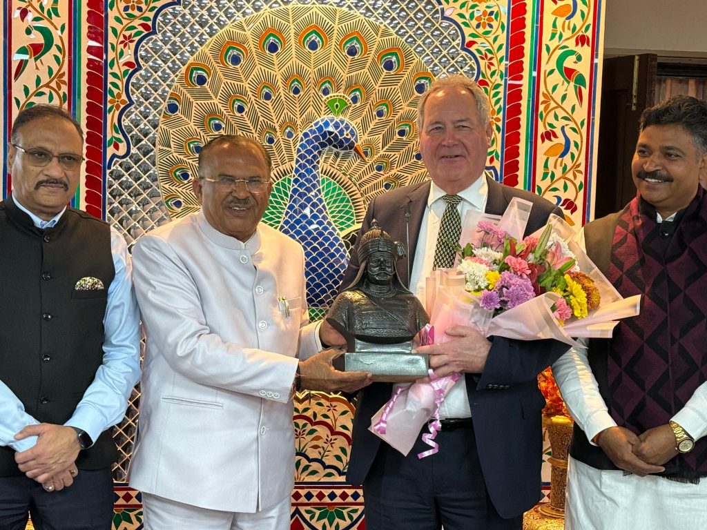 Speaker Mr. Vasudev Devnani welcomed and felicitated him.During the meeting, Speaker Mr. Vasudev Devnani welcomed the British MP and briefed him on the workings, traditions, and modern innovations of the Rajasthan Assembly.